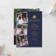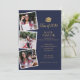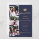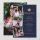 Avec vos 4 photos préférées de remise de diplôme, cette invitation de fête de graduation moderne bleu marine et or peut être personnalisée avec vos photos et les détails de votre célébration. Conçu par Thisisnotme©