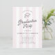 Cette élégante carte d'invitation de remise de diplômes présente des rayures rose pâle associées à une illustration de casquette propre pour un look intemporel et festif. La mise en page classique crée une atmosphère raffinée et moderne, parfaite pour honorer le diplômé avec style. Entièrement personnalisable avec vos informations d'événement, cette invitation donne un ton soigné pour une célébration de remise de diplômes mémorable.
