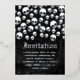 Un motif de crânes aléatoires dans une palette de couleurs noire et argentée gothique sur un fond usé et rayé. Feuille métallique argentée.