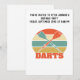 Belle carte d'invitation vintage fléchettes au coucher du soleil. Belle invitation pour tout amateur de fléchettes. Colorée et parfaite pour célébrer un anniversaire ou pour un tournoi de fléchettes. La carte est facile à personnaliser avec votre texte, police, couleur de police. Achetez maintenant.