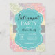 Carte d'invitation Floral Retirement Party. Invitation du Parti de la retraite des femmes. Motif de fleurs florales. Turquoise Aqua Turquoise. Gary Jaune Orange Rose violet Vert Orange.