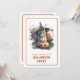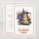 Trouvez les fournitures parfaites pour la fête d'Halloween avec une étonnante aquarelle design avec un chat avec un casquette magique et un citrouille sculpté. Faites de votre fête d'Halloween une fête inoubliable avec ces décorations uniques et visuellement attrayantes. Belle carte d'invitation de fête d'Halloween.