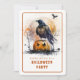 Trouvez les fournitures parfaites pour la fête d'Halloween avec une étonnante aquarelle design avec une corneille sur un citrouille sculpté. Faites de votre fête d'Halloween une fête inoubliable avec ces décorations uniques et visuellement attrayantes. Belle carte d'invitation de fête d'Halloween