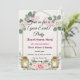 Cette élégante invitation présente un fond blanc encadré d'une délicate bordure géométrique dorée. En haut, des roses blanches de style aquarelle, de la verdure d'eucalyptus et des touches de rose pâle ajoutent une touche romantique moderne. Le bas est orné de roses roses pastel et d'un feuillage luxuriant, accentué par deux lanternes lumineuses qui créent une atmosphère chaleureuse et charmante. Parfait pour les mariages, les fêtes prénuptiales, les fiançailles, les anniversaires ou toute occasion spéciale.