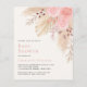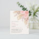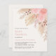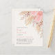 Cette carte d'invitation de baby shower fille à petit prix est décorée de herbe des pampas aquarelle, d'une feuille de palmier séchée et de roses roses sur un fond crème doux.