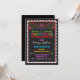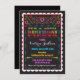 Carte d'invitation pour fête d'anniversaire Fiesta mexicaine avec bordure festonnée. Super mignonne et colorée. Inspirée par les bannières papel picado, cette invitation présente des cœurs et des fleurs décoratifs ainsi que des motifs aztèques et des bannières de couleurs vives sur fond noir. Illustration dessinée à la main par McBooboo.