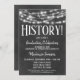 Une carte d'invitation amusante pour une fête de remise des diplômes en histoire sur tableau noir en noir et blanc avec des lumières scintillantes en haut.