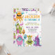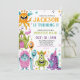 Une invitation à la fête du premier anniversaire lumineuse et amusante pour votre petit monstre avec de nombreux monstres dessinés à la main de différentes couleurs, formes et tailles avec des sourires drôles et heureux, des yeux globuleux et des visages ridicules et adorables. Idéal pour un anniversaire proche d'Halloween ou pour tout enfant qui aime les monstres humoristiques ! Voir toute la collection de fêtes assorties !