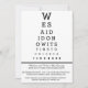 Nous avons dit "oui" maintenant il est temps de faire la fête est écrit de manière unique, amusante et originale sur une invitation de réception après mariage, personnalisable facilement en utilisant le modèle fourni. Les invités adoreront l'originalité de notre version du tableau d'acuité visuelle de Snellen transformé en invitation de fête après mariage. Si vous avez des questions ou des demandes spéciales, envoyez simplement un e-mail à zazzleinvites@gmail.com.