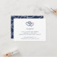 La carte d'invitation de réception de mariage de style côtier romantique présente les détails de votre réception (horaire, lieu et adresse) en bleu marine classique, surmontés d'une paire de cœurs de corde noués nautiques en bleu marine.