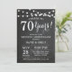 Carte d'invitation pour le 70e anniversaire de mariage. Fond de tableau noir. Guirlandes lumineuses. Noir et blanc. 1re, 2e, 3e, 4e, 5e, 10e, 15e, 20e, 25e, 30e, 35e, 40e, 45e, 50e, 55e, 60e, 65e, 70e, 75e, 80e, Toutes années. Anniversaire adulte. Fête d'anniversaire pour homme ou femme. Pour une personnalisation supplémentaire, veuillez cliquer sur le bouton "Personnaliser" et utiliser notre outil de conception pour modifier ce modèle.