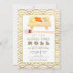 Cette invitation chic et moderne pour le réveillon du Nouvel An " Que les bons moments défilent" présente des sushis aquarellés sur une planche en bois avec des baguettes encadrées par un fond blanc avec des motifs de vagues en faux or. Le verso présente des motifs de vagues en faux or. Changez la couleur de fond à l'avant et à l'arrière et personnalisez-la selon vos besoins.