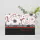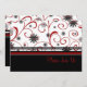 Les invitations à la fête du Nouvel An sont en noir, blanc et rouge élégant, avec d'élégants tourbillons rouges et des flocons de neige noirs, entièrement personnalisables avec les détails de votre fête.