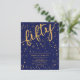 Vous cherchez une invitation de 50 ans moderne et élégante ? Découvrez cette Carte d'invitation pour les 50 ans Budget Script Navy Gold. Elle présente des confettis pailletés dorés sur un fond bleu chic et une calligraphie script élégante. Vous pouvez ajouter vos détails très facilement dans les champs du modèle. Passez une excellente fête de cinquantième anniversaire !