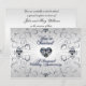 Une conception d'images Digitalbcon présentant un thème de couleur argent platine et diamant avec une variété d'images, de formes, de motifs, de styles et de polices personnalisés dans cette carte d'invitation pour les noces de diamant unique en son genre. Cette conception scintillante est accompagnée d'un design assorti au verso avec lettrage de texte personnalisé pour s'adapter à votre occasion spéciale.