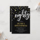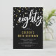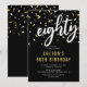 Éblouissez vos invités avant même le début de la fête avec nos invitations d'anniversaire des 80 ans élégantes et modernes. Avec un fond noir chic, des confettis blancs et or scintillants et un script 'quatre-vingts' gras, ces invitations offrent une touche d'élégance et de joie festive. Son modèle de texte convivial facilite la personnalisation, ce qui garantit que vos invitations sont aussi uniques que votre événement marquant.