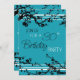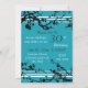 Carte d'invitation à la fête du 30e anniversaire dans un élégant motif floral turquoise et noir, délicat et élégant avec un design d'arbre fleuri. Personnalisable avec les détails de votre fête.