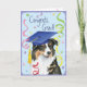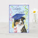 Félicitez votre diplômé préféré avec un cadeau avec un joli et heureux diplômé australien de Shepherd portant un mortier au milieu d'une flûte de confettis.