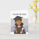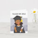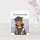 La belle femme d'afro-américain célébrant le jour tenant le diplôme dans sa main et le faisant manie maladroitement vers le haut du signe. Célébrez votre jour avec cette belle conception de studio de Kakigori.