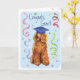 Félicitez votre diplômé préféré avec un cadeau comportant un diplômé mignon et heureux de caniche standard portant une taloche parmi une bourrasque des confettis.