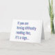 Les mots ont l'effet anaglyphe qui rend difficile à lire, alors ne pas trop regarder. Le message sur le devant dit : "Si vous avez de la difficulté à lire ceci, c’est un signe..." tandis que le message à l’intérieur dit : "... Vous avez besoin de lunettes. Joyeux 30e anniversaire !" Légende amusante pour insinuer que le garçon ou la fille d'anniversaire est en train de vieillir. Design par Rusty Doodle.
