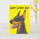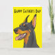 Coloré et élégant, dites votre papa que vous vous inquiétez avec cette conception gaie de dobermann. Facilement customisé avec votre propre texte, ou changez la couleur d'arrière - plan en favori de votre papa !