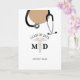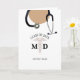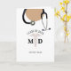 Envoyez une nouvelle diplômée de médecin cette carte de félicitations pour l'examen des diplômes de doctorat. Il est conçu avec un arrière - plan blanc personnalisable et ressemble à un top gommage médical avec un stéthoscope autour du cou. Un symbole caduceus et l'abréviation "MD" sont au centre avant avec "classe de" année personnalisée et personnalisée avec le nom. L'intérieur de la carte a un simple accueil personnalisable et votre nom de signature. CLIQUEZ SUR PERSONNALISER L'OPTION MODÈLE ET SUIVEZ LES PROMPTS.