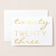 Année personnalisée 2023 Élégante typographie Joyeux Nouvel An Vrai or ou Argent Foil Carte du Nouvel An