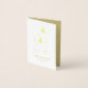 Carte de vacances chic non photo en feuille métallisée .Cette carte moderne présente un ensemble d'arbres de Noël dorés. Le texte élégant peut être complètement personnalisé avec votre nom, année et un message personnalisé.