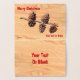 Un rendu numérique rustique de cônes de pin "sculptés" sur une branche, superposé sur une image de fond en bois. Texte personnalisable lisant "Joyeux Noël" également visible. Ajoutez votre propre texte supplémentaire.
