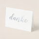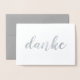 Cette carte élégante est parfaite pour chaque fois que vous avez besoin de remercier quelqu'un pour un cadeau ou une gentillesse. Le mot allemand "danke" est en écriture manuscrite (brosse), en papier argenté réel. L'intérieur de la carte est vide pour votre message personnel. Idéal pour les locuteurs, les étudiants ou les enseignants allemands !