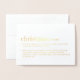 Cet article est une véritable carte de voeux en feuille d'or. Personnalisez le texte personnalisé ci-dessus. Les couleurs arrière - plans utilisées dans cette collection peuvent également être customisées. Vous pouvez trouver d'autres éléments de coordination dans notre Définition de la Collection des Fêtes.