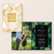 Impressionnez vos invités avec cette élégante invitation à mariage à thème tropical mettant en vedette un arrière - plan de feuillage feuille en feuille d'or à l'extérieur. Ajoutez simplement les détails de votre événement sur ce modèle facile à utiliser et ornez cette carte avec votre photo préférée pour en faire une invitation unique.