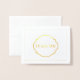 Real Gold Foil Thank You Note Card est montré en blanc avec un nom d'échantillon et un bordé de bordure et imprimé d'accent en papier or réel. Customisez cette carte et changez l'exemple de texte à vôtre avec ce modèle ou achetez comme indiqué.