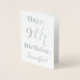 Cette conception simple et élégante de carte d'anniversaire en feuille d'argent comporte un message comme "Happy 9th Birthday, Jennifer!" sur le devant. Le nom ("Jennifer") peut être modifié pour personnaliser la carte. L'intérieur comporte un message personnalisable comme "Que votre 9e anniversaire soit heureux et joyeux !". Il pourrait être donné à quelqu'un qui célèbre son neuvième anniversaire. [~Z0000009]