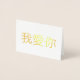 Une belle carte en papier d'aluminium qui dit que je t'aime en chinois ! Vous pouvez modifier les options pour modifier le style ou le message. Vous pouvez également choisir l'or ou l'argent, le type de papier et les enveloppes!