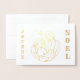 Envoyez des salutations de joie et de paix cette saison de vacances avec cette carte de Noël en feuille d'or élégante mais simple. Ce dessin présente le texte "JOYEUX" et "NOEL" sur le devant de la carte avec une jolie image de Joseph, Marie, et le bébé Jésus avec une étoile brillante au-dessus. A l'intérieur de la carte, le message dit : "C'est la saison pour se souhaiter joie, amour et paix. Joyeux Noël." Customisez la carte en la signant avec les noms de votre choix.