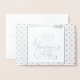 Joyeuse Saint-Valentin Élégante Carte de vœux Luxe Argent décorée avec une décoration de cadre en feuille d'argent, effet 3D. Cœurs décoratifs argentés modernes, pois, motif chevron, lumières scintillantes et confettis argentés. Belle Carte Romantique avec un texte de vœux spéciaux : « J'espère que votre journée sera remplie de rappels de combien vous êtes aimé ». Calligraphie, lettrage. Personnalisez-les en ajoutant votre texte de vœux et vos Noms pour votre Design Élégant Tendance.