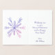 Joli dessin en feuille d'or sur le devant, Joyeux Noël est écrit avec un grand flocon de neige au milieu. L'intérieur de la carte est muni d'un flocon de neige violet sur la gauche avec un joli message sur la droite. Customisez le vôtre aujourd'hui !