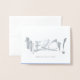 Cette carte de langue française a des couleurs rouge et bleu à l'intérieur, et MERCI! dans un script de brosse moderne en feuille d'argent à l'extérieur. Le recto contient le texte supplémentaire "MERCI MILLE FOIS" (="MERCI TELLEMENT BEAUCOUP"). Il est également en papier argenté, et peut être édité pour votre propre message, ou un nom par exemple.