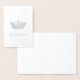 Pageant Crown Foil Carte de remerciements Cette carte est présentée en papier stock de carte d'arrivée mat blanc avec un style Miss America Crown et du Merci en papier argent réel. Ajoutez votre propre salutation à l'intérieur si vous le désirez. 5" x 7" Taille Customisez cette carte ou achetez tel quel.