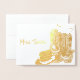 Cette carte de remerciement est montrée avec un imprimé de couronne de la reine au style Miss America et une paire de bottes de cowboy et de casquette, ainsi que votre nom personnalisé ou titre de concours en feuille dorée d'or réel. L'exemple de titre indique Miss Texas. A l'intérieur, une grande botte de cowboy brun est imprimée avec une couronne argentée pointillée sur l'angle. Texte du Merci à côté de la couronne. Un énorme démarrage avec le texte est imprimé près du centre de la carte de haut en bas vous permettant beaucoup d'espace pour écrire votre message spécial au destinataire. Personnalisez ou achetez comme.