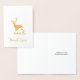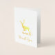 Carte de remerciement en véritable feuille d'or avec un design cool de style boho. Une silhouette de renne à l'intérieur d'une couronne de feuilles d'herbes. Des champignons et des fougères de forêt à ses pieds. 'Merci' écrit sur le devant et un message à l'intérieur de la carte, tout personnalisable pour répondre à vos besoins personnels.