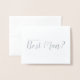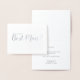 "Serez-Vous Mon Meilleur Homme ?" Script moderne Silver Foil Card avec le titre "Will You Be My Best Man?" en vrai feuille d'argent style de police de script moderne sur le devant avec le texte gris personnalisé à l'intérieur de la carte.
