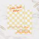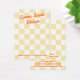 Carte d'affichage de bijoux avec votre nom d'entreprise dans une police orange de style rétro sur un motif de damier jaune et blanc clair