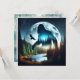 Carte pour notes vierge avec Bigfoot avec une double exposition d'arbres, une rivière, un aigle et une pleine lune.