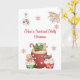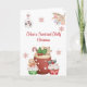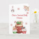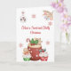 Cette charmante carte de vœux à l'aquarelle est parfaite pour quiconque a un petit faible pour les sucreries ! Le design présente une collection festive de friandises de Noël, notamment une tasse déborder de crème fouettée et surmontée d'un bâton de bonbon et d'un flocon de pain d'épice, ainsi que deux cupcakes magnifiquement décorés - l'un avec un bonhomme en pain d'épices et l'autre avec des baies de houx. Le texte rouge en écriture cursive dit : « Passez un Noël doux et plein de houx ». La carte est complétée par des touches fantaisistes comme un petit pingouin à l'intérieur d'un ornement en verre et des branches de pin délicates peintes à l'aquarelle avec des boules colorées. Envoyez un message vraiment doux à vos amis et à votre famille pendant cette période des fêtes !