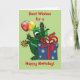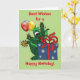Vous pouvez customiser et ajouter votre propre message à cette Carte d'Anniversaire Dragon Happy avec Présent et Ballons