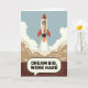 Send an explosive message of ambition and success with this awesome retro-styled card! The design features a classic red and white rocket ship blasting off through clouds of smoke, symbolizing a great achievement or new beginning. The motivational quote, "DREAM BIG, WORK HARD," is highlighted in a bold speech bubble. This card is perfect for graduation, congratulating a new entrepreneur, celebrating a new job or launch, or simply sending a powerful message of determination and success. The vintage comic art style makes it unique and appealing to a wide audience, including students and business professionals.