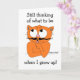 Cette drôle de carte de voeux présente le chat moustache de dessin animé Señor Gato™ dans une pose très réfléchie avec le dicton "Toujours penser à ce qu'il faut quand je serai grand !" La carte est vide à l'intérieur pour écrire votre propre message !